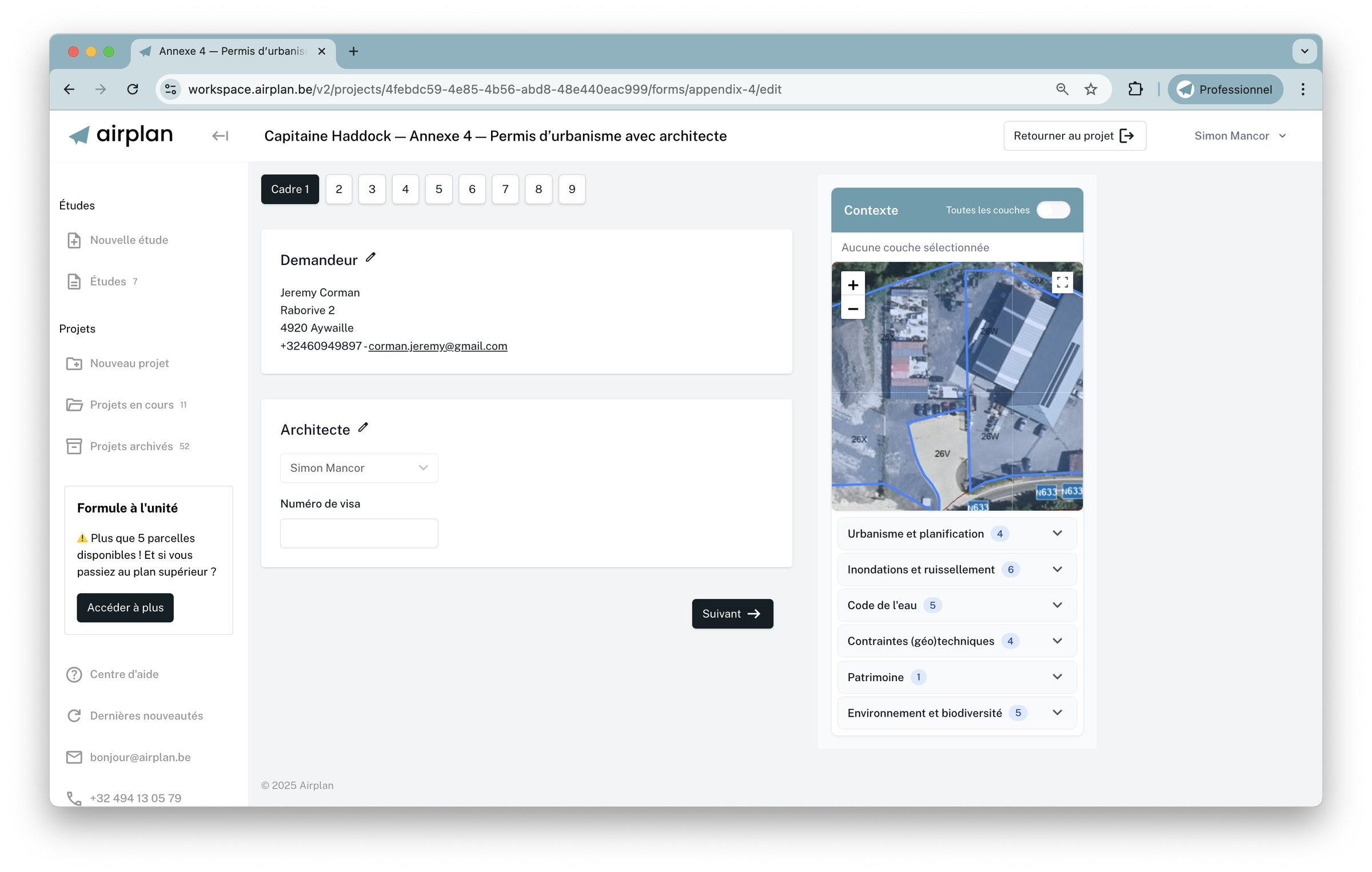 Airplan me permet d'optimiser la recherche des enjeux sur les parcelles de mes projets tout en minimisant le risque d'erreur d'encodage et de réplication des données et informations de contacts dans les différents fomulaires.